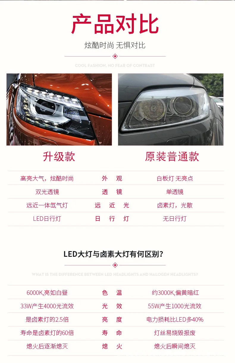 Front Lamp Lighting Accessories DRL Daytime Running Lights For 06-15 Audi Q7 Headlight Assembly Head Lamp Turn Signal