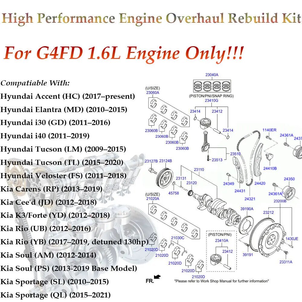 • Application: For Hyundai Kia Accent Rio 1.6L DOHC 12-16 G4FD