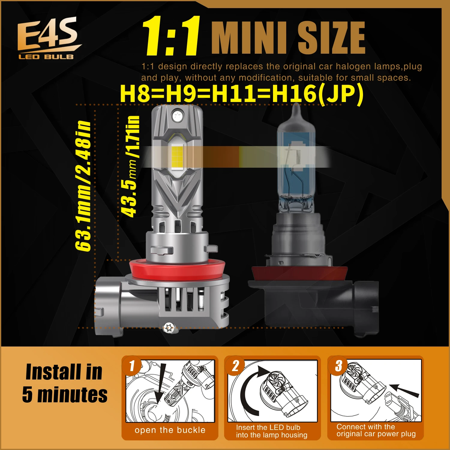 3. Mini Size Design . 1:1 Size Design with Halogen Bulb, Fit for 99% Vehicles.