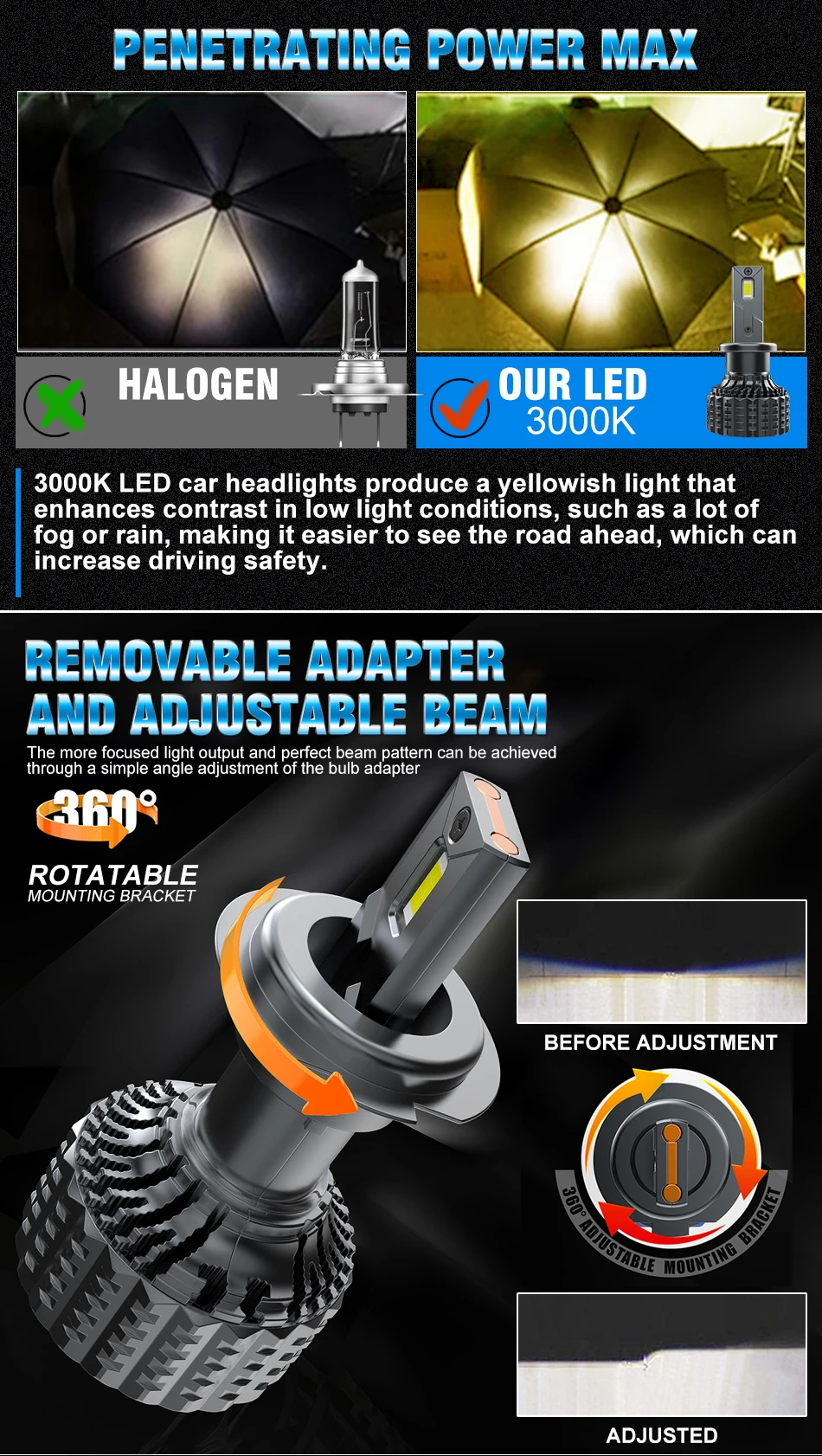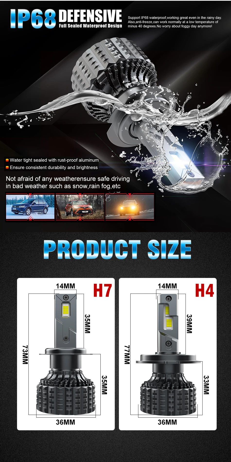 - Socket: H1, H4, H7, H8/9/11, 9005/HB3, 9006/HB4, 9012/HIR2