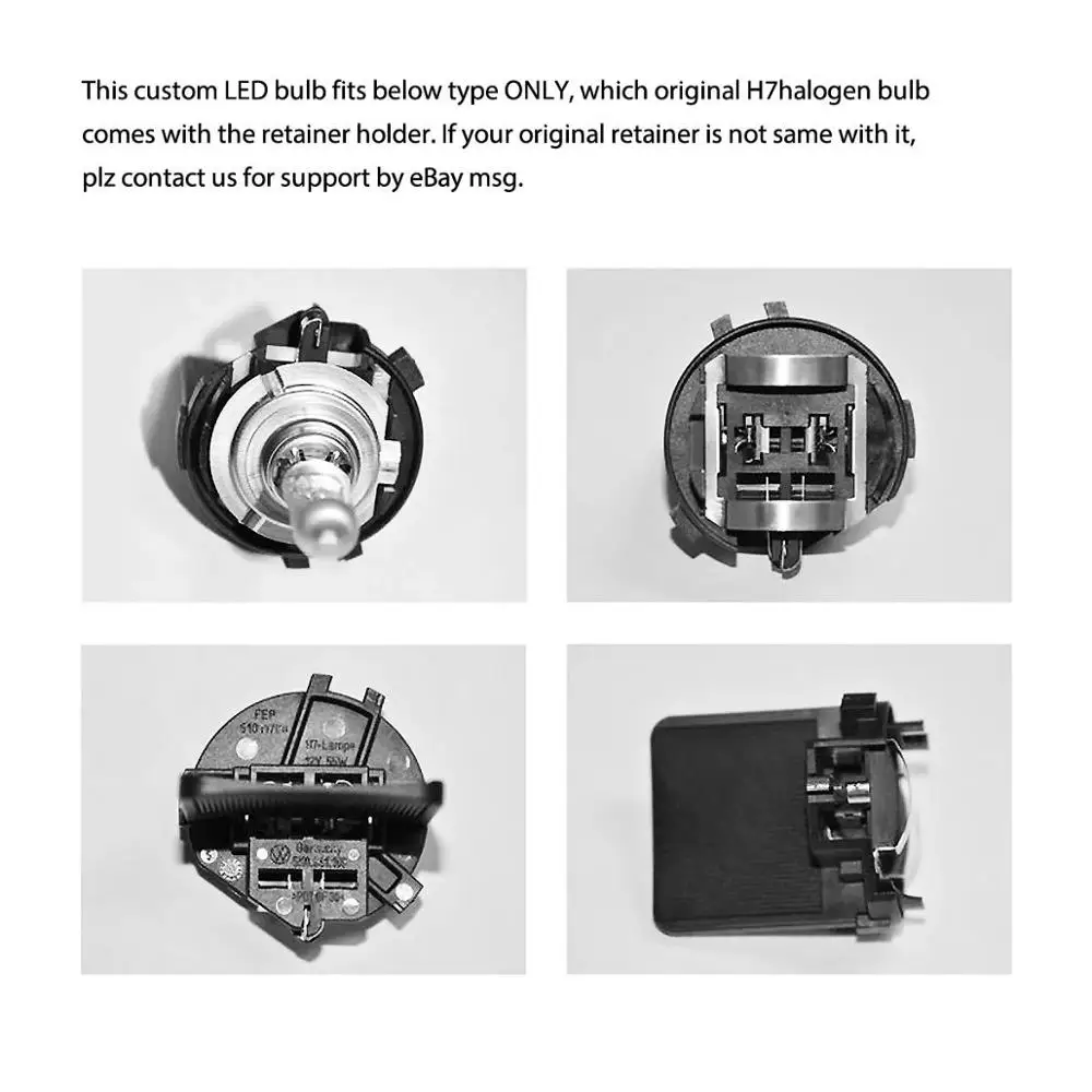 This custom LED bulb H7 fits the type below only, which is a retainer holder coming from factory halogen bulb from four angles.