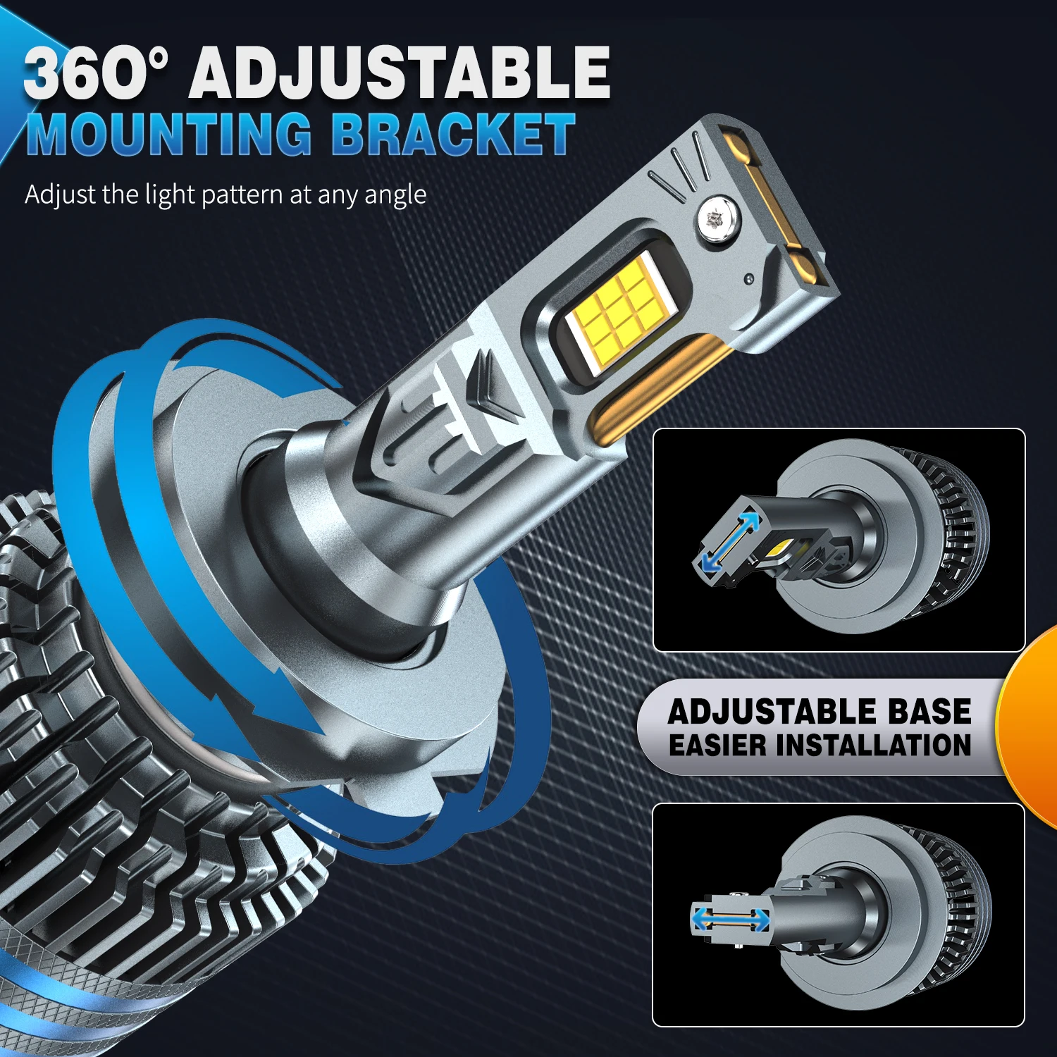 (H1, H3, H4, H7 are adjustable at 360 degrees, 9005, 9006, 9012, H11 are adjustable at 320 degrees.)
