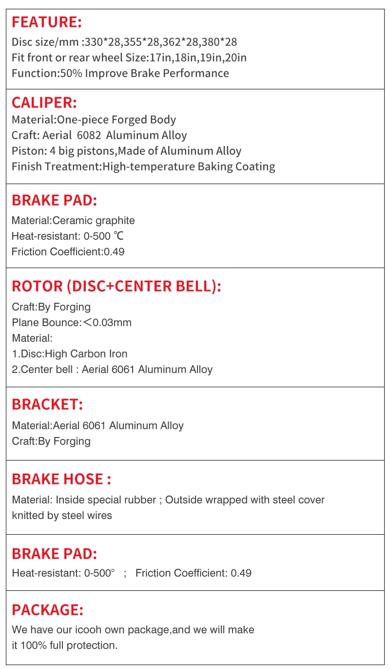 - Brake caliper meterial: Aviation aluminum alloy 7075