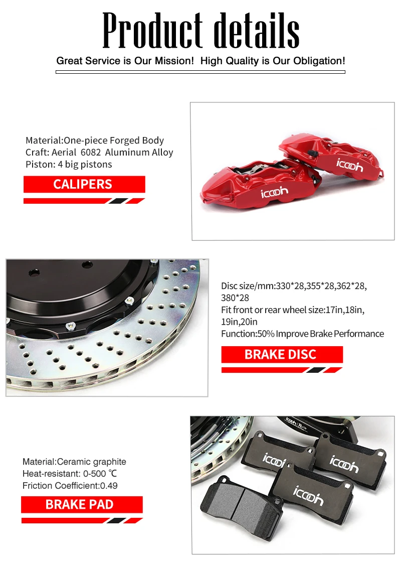 - Brake rotors meterial: High carbon alloy