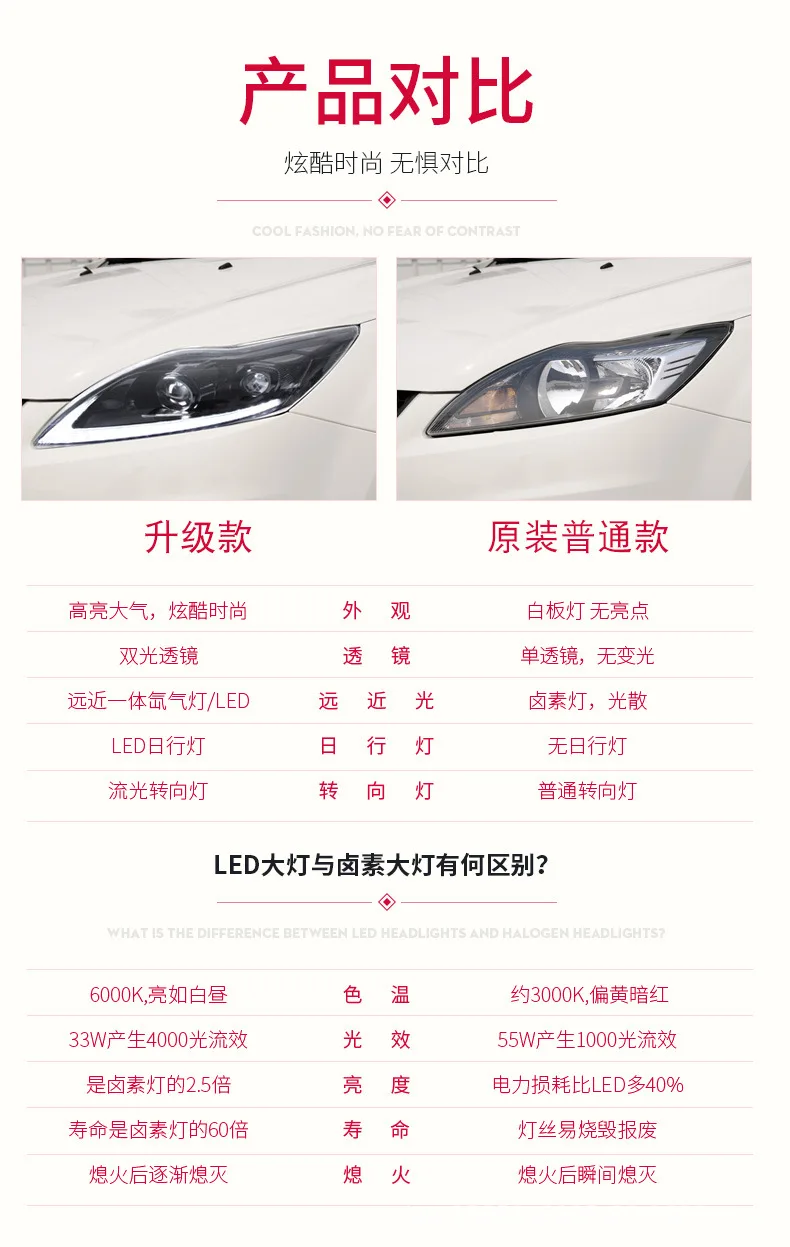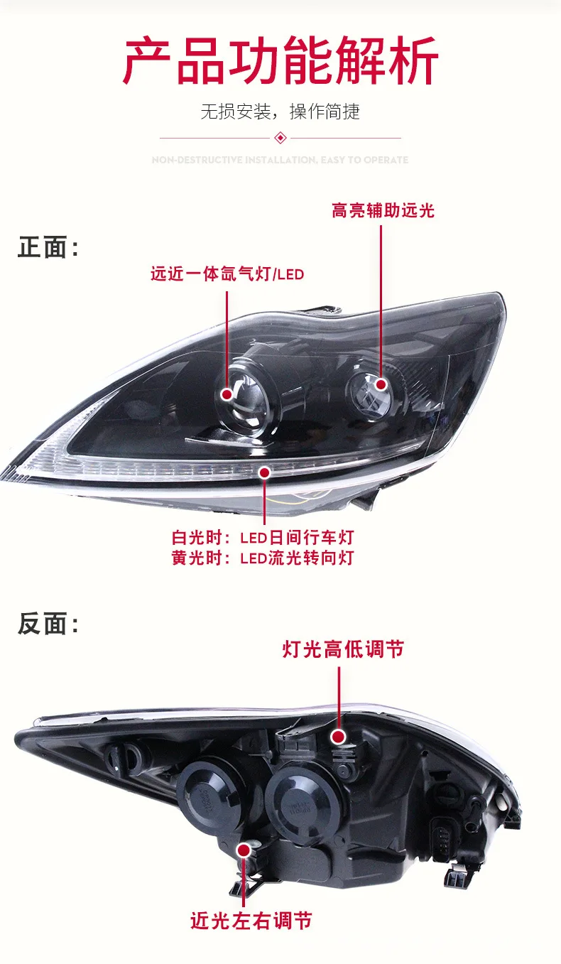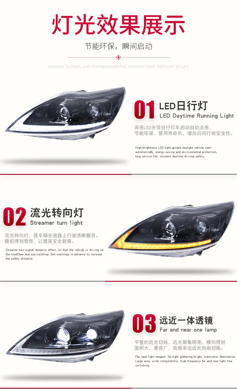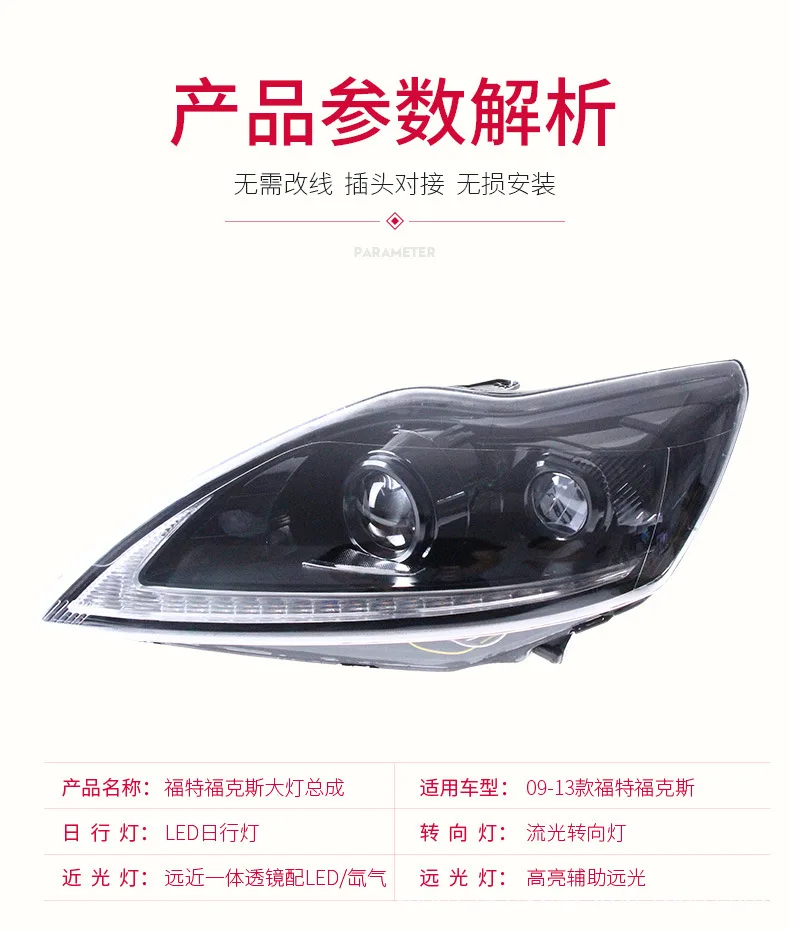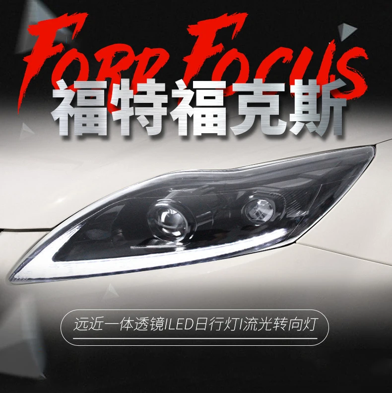 LED Daytime Running Light Car Headlight Assembly For Ford Focus 2009-2013 Front Lamp Auto Part Dynamc Streamer Turn Signal