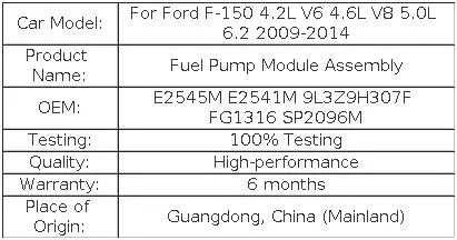 New Electric Fuel Pump Module Assembly For Ford F-150 4.2L V6 4.6L V8 5.0L 6.2 2009-2014 E2545M E2541M 9L3Z9H307F FG1316 SP2096M