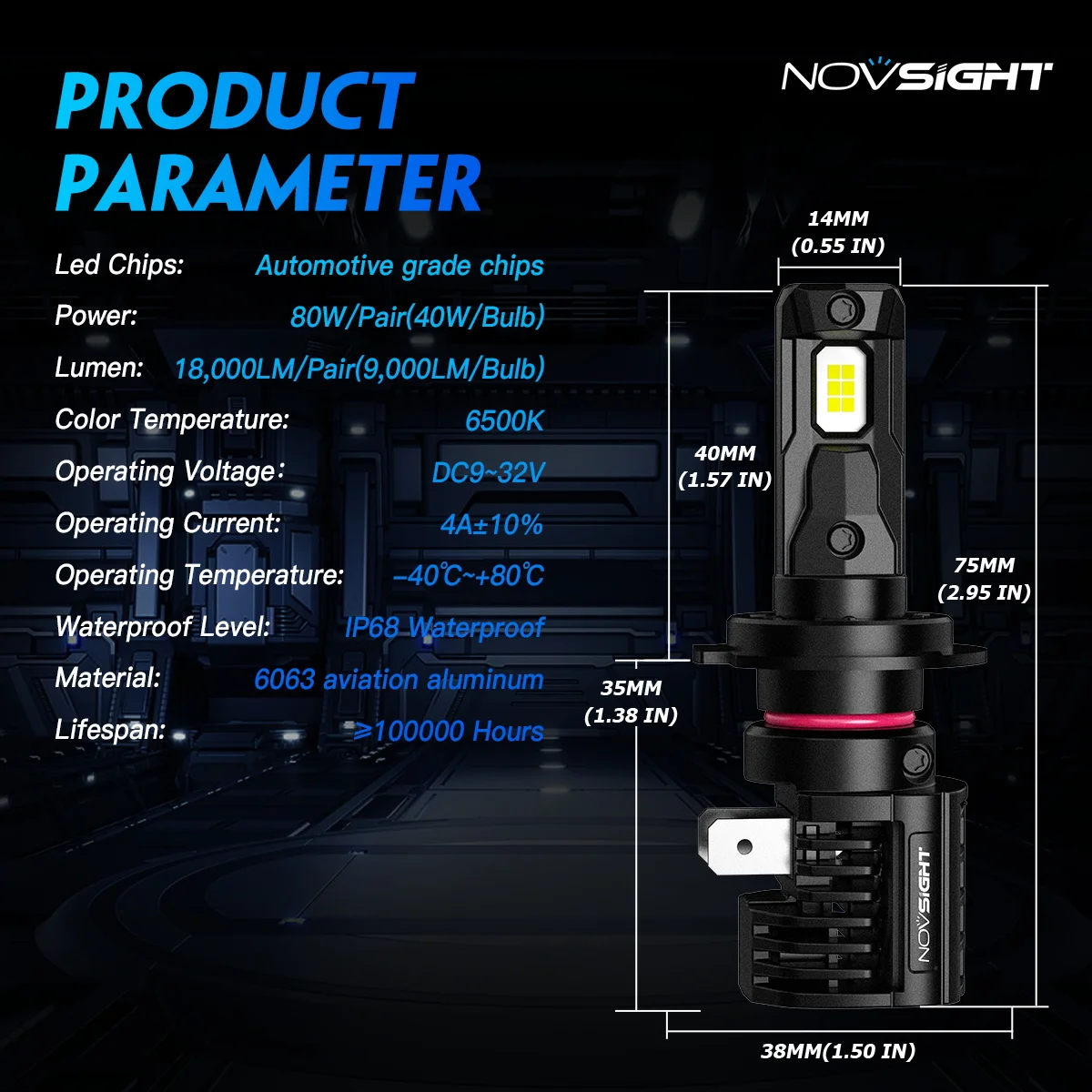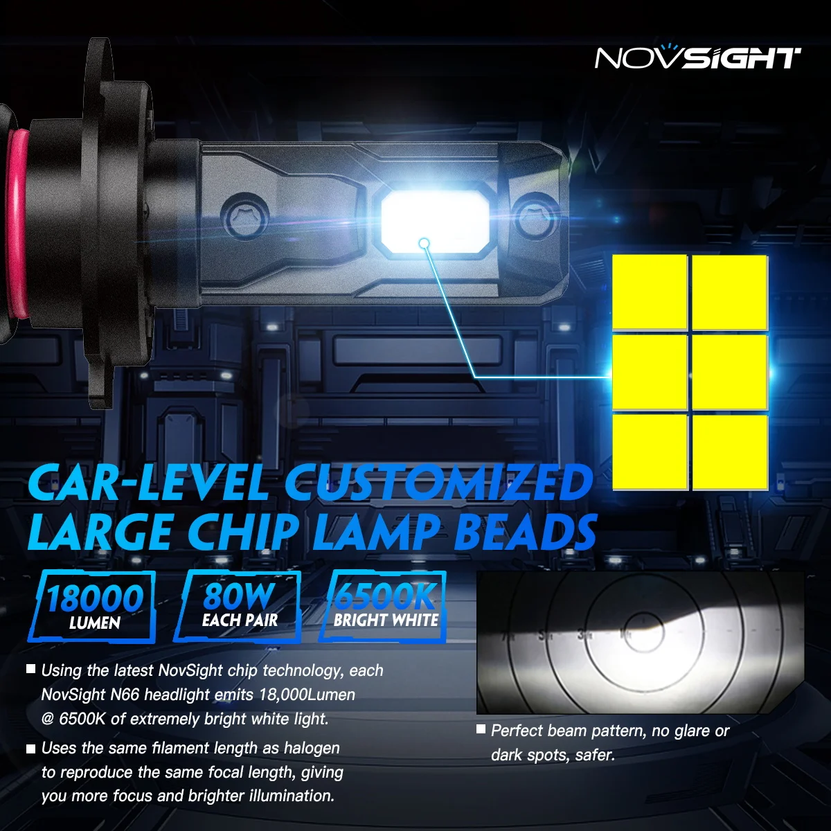 NOVSIGHT Car Headlight H4 H7 LED H8 H9 H11 HB3 9005 HB4 9006 Led Headlight Bulbs 80W 18000LM 12V LED Bulb 6500K White Car Light