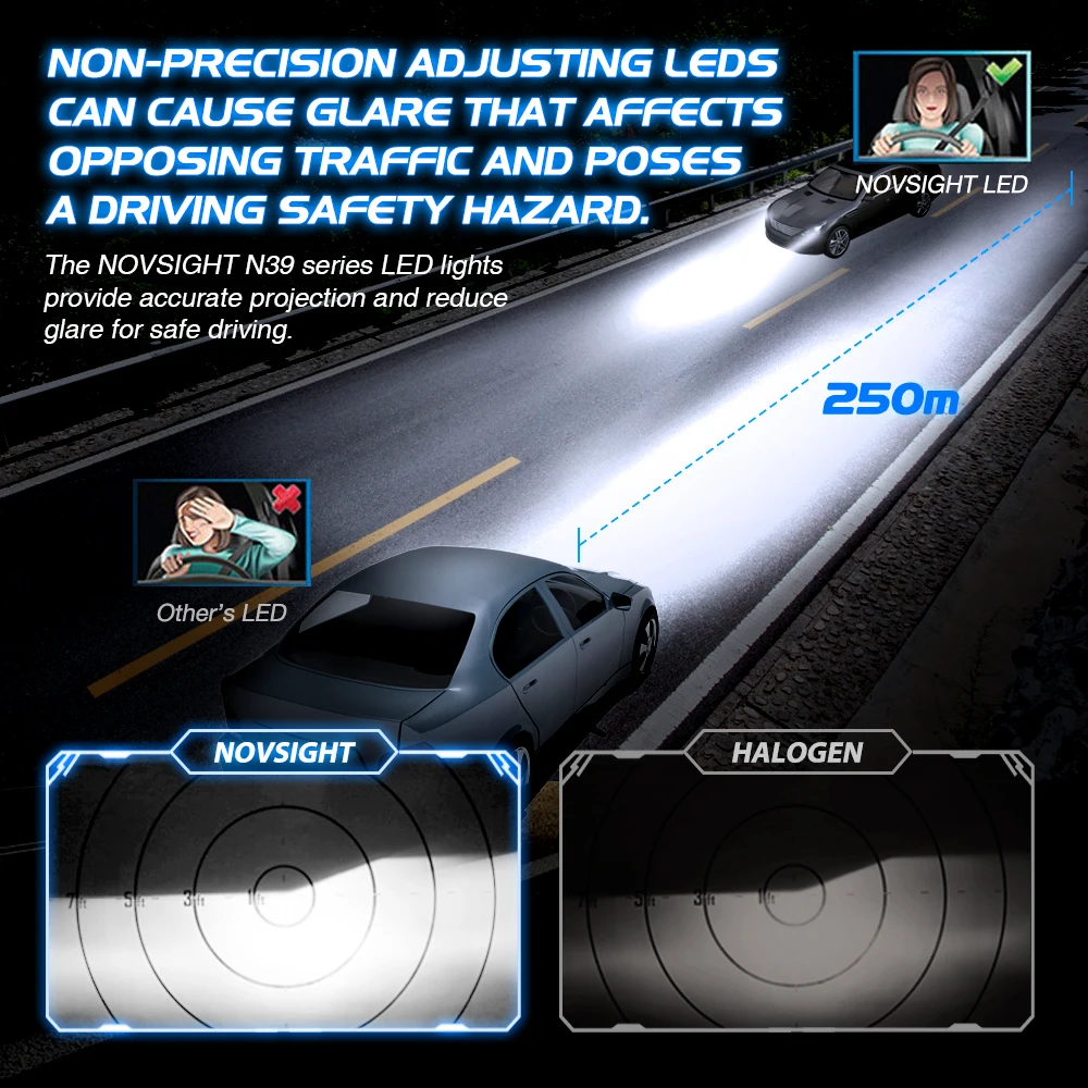 _The Novsight N39 series LED lihts procides accurate projection and reduce glare for safe driving.
