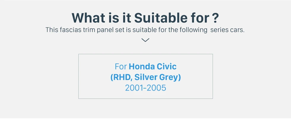 This fascia is specially designed for the modified installation of a double din car radio for 2001 2002 2003 2004 2005 Honda Civic (RHD).