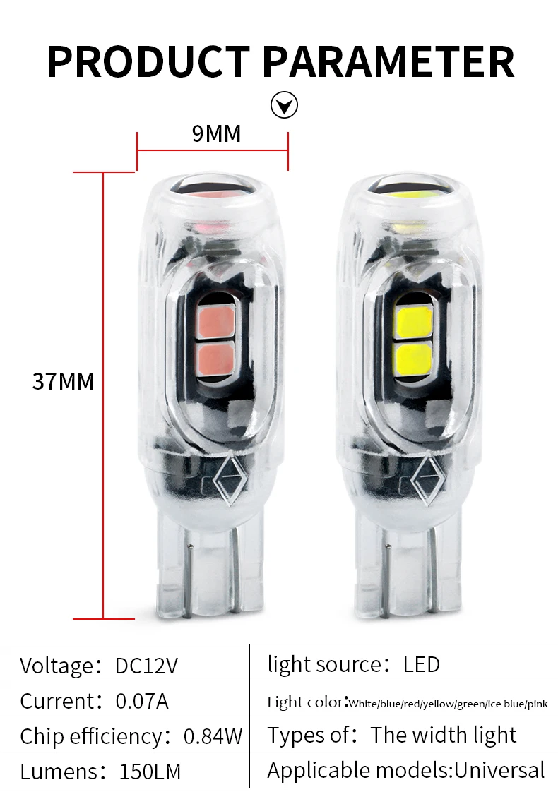 • Model Name: T10 W5W 3030 5SMD LED Bulbs
