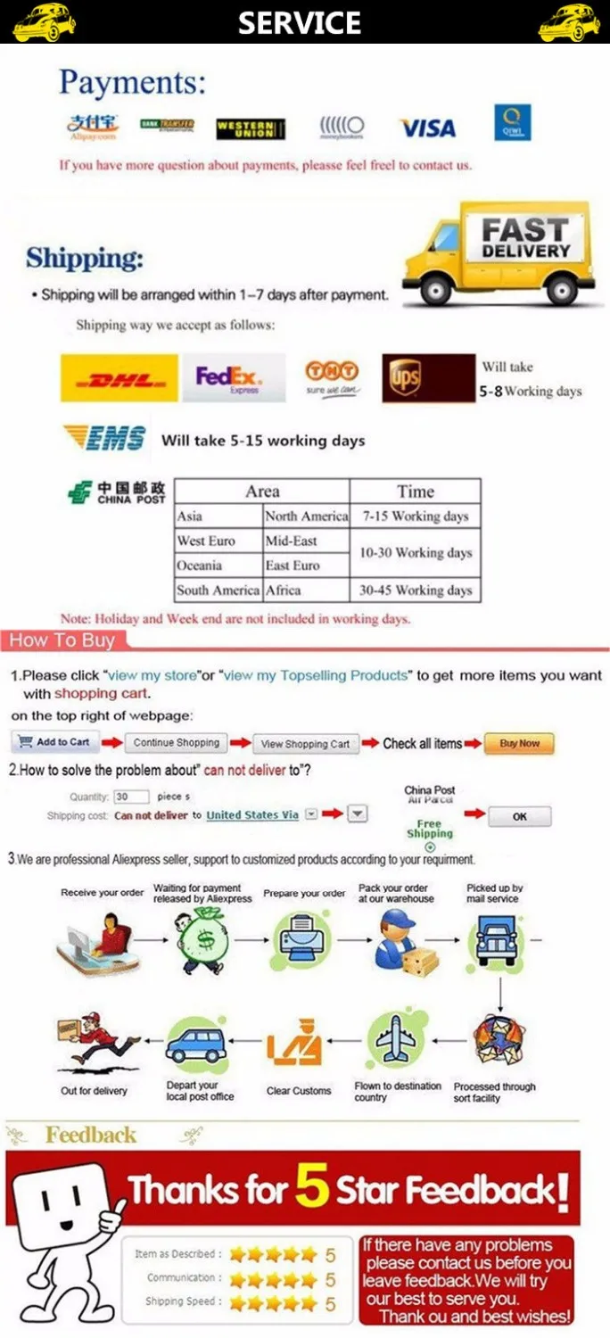 Not satisfied: please contact us before you leave neutral(3 stars), negative(1-2 stars) comments, or open dispute, we will try our best to solve your problem.
