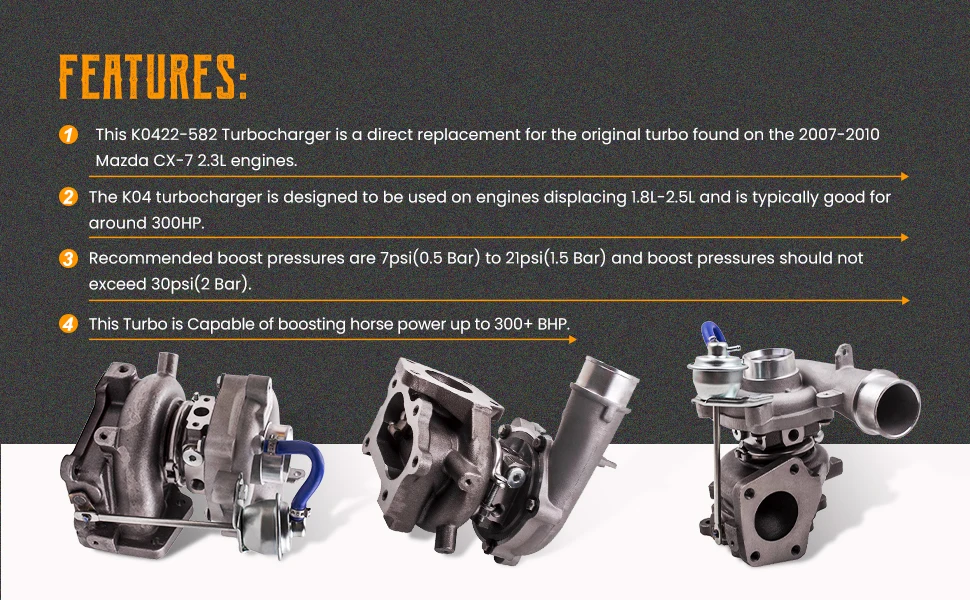 Exact fit, direct replacement of the original turbocharger, fast and easy installation, don’t need to do any change.